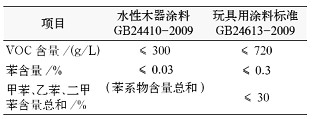 由于玩具直接與人體特別是兒童密切接觸,玩具涂料中有害物質主要有重金屬類、鄰苯類增塑劑和有機溶劑等三大類,一旦其中有害物質超標將會影響到兒童身體健康。為確保兒童身體健康,我國首部《玩具用涂料中有害物質限量》強制性國家標準GB24613-2009將于2010年10月1日起正式實施。由于水性木器涂料能夠做到不含鄰苯二甲酸酯、總鉛及可溶性重金屬符合標準要求,且VOC、苯系物含量遠遠低于GB24613-2009限量指標,2個標準對比見表2。