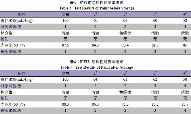 將分別加好消泡劑的涂料在50℃的烘箱中放置14d,然后重復(fù)上面的試驗步驟并記錄結(jié)果。